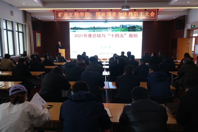 15日下午,学院、煤炭国重在学院楼学术报告厅A604、会议室A509(同步线上)召开了2021年度总结暨“十四五”规划解读会,全体教职工160余人参会。会上,张吉雄院长汇报了我院2021年度的工作总结,并解读了“十四五”规划;黄炳香主任汇报了煤炭国重2021年的各项工作和“十四五”规划情况。会议由学院党委书记陈新忠主持。