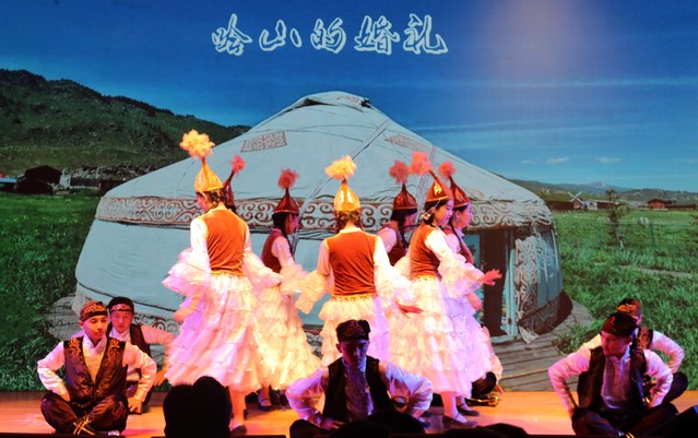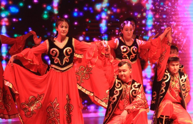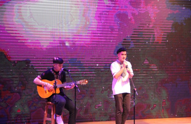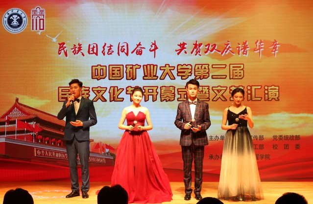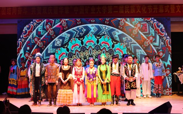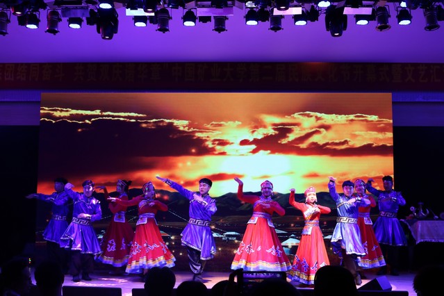 晚会现场,报告厅内师生欢聚一堂,共享民族文化盛宴。晚会由嘎玛次仁美朵等同学带来的《血汗泪》拉开帷幕,激情四射的舞蹈一下点燃了现场的气氛。阿丽耶同学的独舞《恋》展现了民族舞蹈的柔美;塞米、热普凯提的吉他弹唱《一见钟情》、阿升的《你的爱情》、白松的《忘不了》、陈跃鹤、胡笳音的《我爱你塞北的雪》以不同的音乐形式将民汉文化、传统与现代文化结合并表现的淋漓尽致;萨日娜等的舞蹈《查干木仁》、阿迪莱等的《刀郎舞》、加依娜尔等的《哈山的婚礼》,以舞蹈彰显民俗精髓,使人身临其境,独具韵味;由启明艺术团、祖丽阿娅提等表演的情景剧《盛开在矿大的民族花》,让在场师生们感受到民族间和谐融洽、友好团结的氛围,深刻诠释了学生成长成才的心路历程,具有很强的激励意义;由精武舞狮团带来的《舞狮双庆》、努尔艾力等带来的走秀《步履生花》更是为晚会增添了几分绚丽色彩,将现场气氛推到了高潮;晚会在闹娜、孙靖等师生合唱的《国家》中落下了帷幕,悠扬激昂的歌声传递着莘莘学子浓浓的爱国豪情。