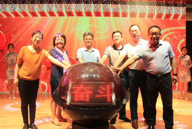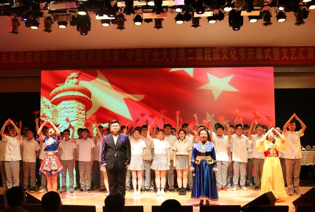 校党委副书记蔡世华和相关部门负责人上台共同开启民族文化节开幕启动水晶球,“民族团结同奋斗、共贺双庆谱华章”中国矿业大学第二届民族文化节正式开幕,文艺汇演正式开始。