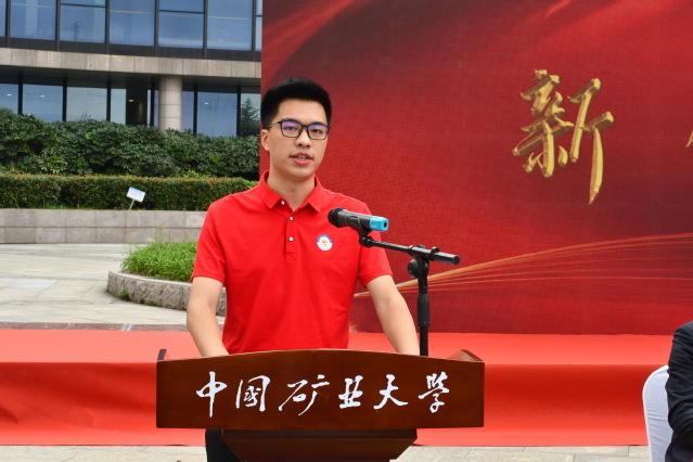 矿业类2021-9班徐子祥作为新生代表发言,他介绍了高考后选择矿业类的心路历程,表示要志在千里,不破楼兰誓不还,要脚踏实地奋斗,练就过硬专业本领,成为一名新时代的矿业人。