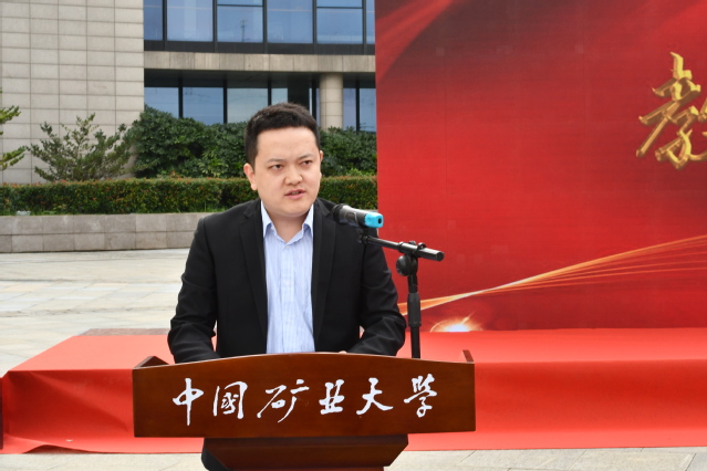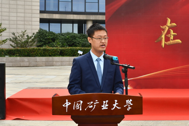 2018级博士研究生陆翔作为在校生代表发言,他分享了发生在求学路上的3个矿业小故事,讲述了一代代矿业人的坚守和付出,祝福各位学弟学妹能够找准定位,好学力行,来矿大,遇见更好的自己,在矿院,成为更好的自己!