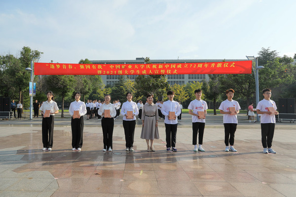 10月1日,“逐梦青春,强国有我”庆祝新中国成立72周年升旗仪式暨2021级大学生成人宣誓仪式在国旗广场举行。校领导刘波、宋学锋、曹德欣、赵建岭、李强、蔡世华,校党委常委、校长助理张万红,校党委常委、组织部部长张万海出席仪式。校团委书记谢发国主持仪式。学院领导班子全体成员,辅导员、新发展党员代表、2021级青年团员代表共同参加了升旗仪式。