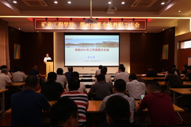 张吉雄院长从学科建设、师资队伍建设、教学改革、科技创新服务、学生培养、管理服务等六个方面全面总结了2021年初以来学院工作取得的成绩和进展,并通报了后半学年度工作规划与整体安排。今年是学院整体工作的质量提升与发展之年,学院围绕学位点建设、十四五规划、双一流建设、高质量国际化等工作集中发力,持续推进学科建设工作;从师德师风、师资引进、职称评审、人才项目申报、聘期考核等五个方面全力做好师资队伍建设工作;学院申报了2项教育部改善办学基本条件专项基本项目,成立了智能采矿工程专业申报工作组开展新工科专业申报,采矿工程专业入选了年度江苏省高校国际化人才培养品牌建设专业项目;2021年学院申报国家自然科学基金58项;新增合同额近1.0亿元,到账科研经费5000多万元,同比增长60.3%。张院长指出,当前我们已经完成了部分工作任务,但距离全面提升与发展的目标仍有差距,大家要以新一轮“双一流”学科建设为契机,进一步凝练学科方向,做好师资引进、教师特别是青年教师的培养工作;要继续推进“111”引智基地建设、新能源科学与工程交叉学科博士点申报等重点工作,要以第五轮学科评估为基础,找差距、补短板,夯实建设基础,做好学科群“领头雁”,为下一轮评估提前蓄能;推进“五金”工程,开展教学改革,继续把教书育人作为人才培养的核心;要面对向国家需求开展科学研究,立足基础探索,重点瞄准科技前沿,集中发力开展科技创新服务工作;同时着力做好管理服务,持续改善工作环境,提升办公效率。最后他强调,在“碳达峰”、“碳中和”的形势下,大家要坚定矿业自信,积极主动,聚焦解决矿业开发难题,在煤炭资源绿色智能安全开发与利用上下功夫,为学科发展添新动力。