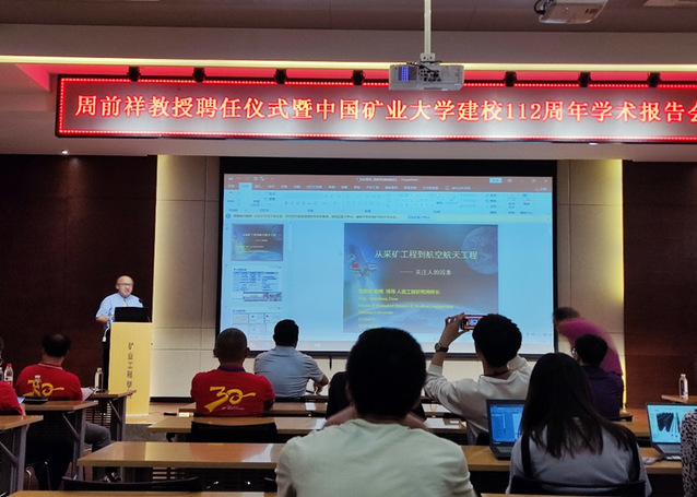 会议第二阶段是中国矿业大学112周年校庆学术报告会。周前祥教授的学术报告题目为《从采矿工程到航天航空工程——关注人的因素》。