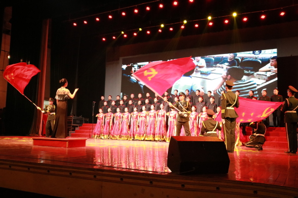 舞台上,学院教职工通过神圣、庄严、经典的誓词配上宏伟、激昂、坚定的旋律,让誓词插上音乐的翅膀飞进党员们的心房,唱出了全体党员的共同信念、庄严承诺、行为准则和磅礴力量。在全体成员的共同努力之下,矿业学院取得历史最好成绩。
