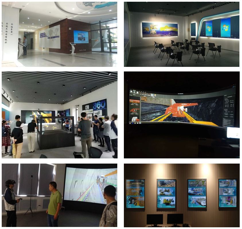 采矿工程教展中心学院区域建设是为了提升实验教学环境、改进实验教学方法及技术手段。该区域采用虚拟现实、仿真技术及计算机技术,配合3D环幕投影系统、大型拼接屏、全息投影设备、人机交互装备等,实现采矿技术与装备的设计、教学及展示。