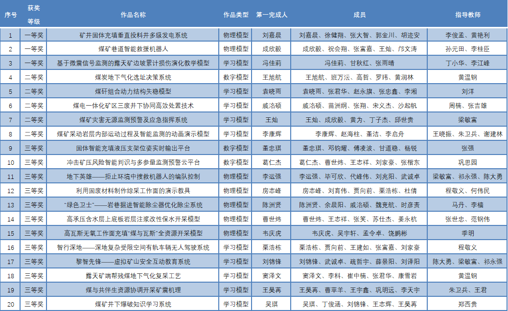 (智能)采矿工程专业学生实践作品大赛获奖名单