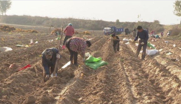 8月16日,队员们决定深入农村,去脱贫攻坚的第一线,看到脱贫攻坚给农民带来的最贴近生活的变化,当队员们来到刘心实村,首先看到的是村民辛勤劳作的身影。刘心实村位于黄河滩区,土地沙化,不适合一般经济作物的生长。当地村民大多选择种植耐旱、适合沙土地的山药。当地村民告诉我们:“山药种植技术门槛低,管理方便,产值也很高,也让自己有了稳定的收入。”