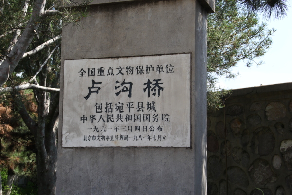 卢沟桥事变旧址分为卢沟桥与宛平城两个部分,其中的卢沟桥是北京市现存最古老的石造联拱桥,其技术和精美的石狮雕刻独标风韵,誉满中外。在宛平城内南北大街与东西大街的交汇处,建造有占地约1.1万平方米的宛平广场,象征国家富强、人民无畏的“醒狮”铜雕屹立于广场中央,广场建成后成为城内开展爱国主义教育活动的中心场地。19377月7日,历史奔流至此,瞬间迅猛改道。日本帝国主义在卢沟桥悍然发动了全面侵华战争,驻扎在宛平的中国军队奋起反击抗日战争从这里正式开始,史称“七七事变”。卢沟桥和宛平城成为了历史的见证,桥上破损的石狮子与墙上凹陷的弹坑仍不断地提醒着人们那段屈辱的历史,提醒着人们要发奋图强,振兴中华。