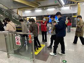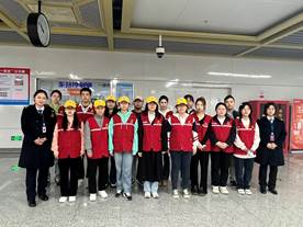 交通运输系莫祥伦、金晓红老师带领2019级全体学生前往徐州地铁1号线、2号线换乘点彭城广场站开展志愿活动。学生志愿者们身穿红色马甲分别在自动售票机、电梯口、进出站口等多个客流量较集中的点位进行志愿服务,引导乘客有序排队、保持安全距离,倡导文明乘车,面对乘客积极热情,为乘客提供路线引导、咨询帮助,与乘客一起维护安全、正点、整洁、舒心的地铁乘车环境,提高乘车整体满意度。