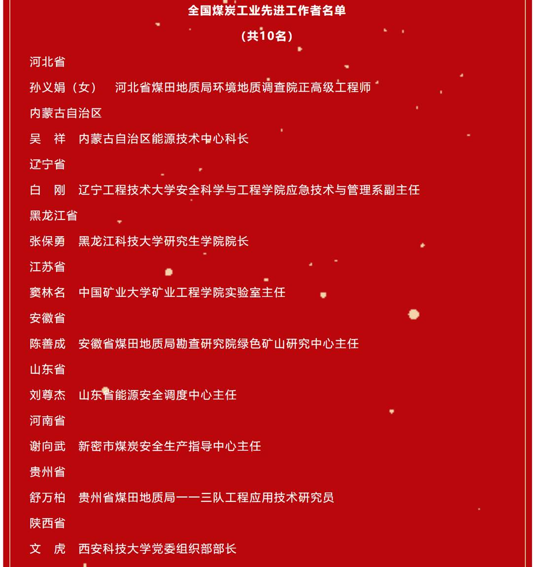 窦林名教授荣选“全国煤炭工业先进工作者”称号。
